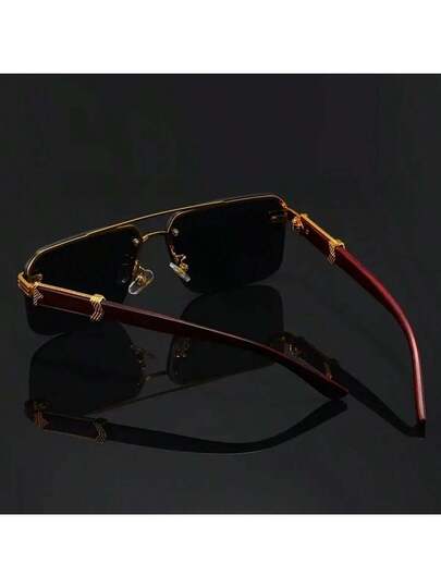 1副经典时尚黑色镜片眼镜,金色镜框,仿木纹镜腿 - 彩色 - 查看 6