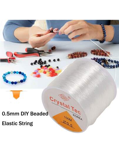 1條透明彈性珠子線(0.5mm*100m),用於寶石首飾製作,diy項目的理想選擇 - 白色 - 查看 9