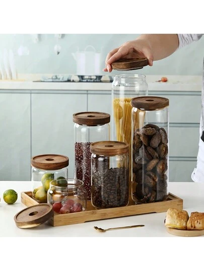 1 件透明玻璃儲物罐,帶相思木蓋,高硼矽酸鹽,尺寸:9*7.5 厘米/10 厘米/15 厘米/20 厘米/25 厘米/30 厘米 - 白色 - 查看 11