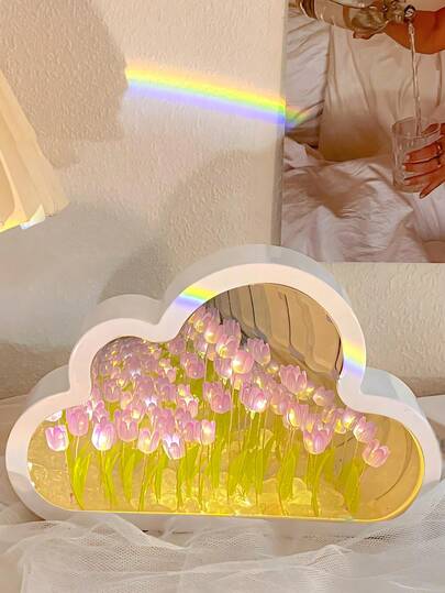 1个云朵郁金香桌面装饰灯(20朵花),DIY郁金香云朵镜前夜灯,镜前灯,郁金香云朵LED夜灯套装 - 亮度可调,现代花卉设计,适合任何房间 - 理想的生日礼物,适合女孩生日、开斋节、情侣、朋友、学生创意礼物,家居、书桌、梳妆台装饰灯(注意:半成品,未完成品) - 雲朵鬱金香 - 查看 7
