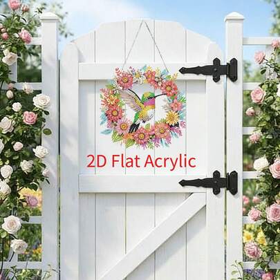 1件彩色蜂鸟花环钻石画挂饰,单面亚克力DIY艺术工艺品,成人礼物,艺术爱好者和鸟类爱好者的礼物