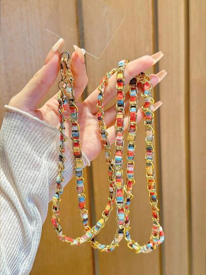 1条彩色皮革金属斜挎链,简约创意设计,适合女士,可用作手机壳链或时尚包扣。适合送给母亲、家人、朋友、生日、节日的礼物,手机吊饰,手机链 - 彩色 - 查看 1
