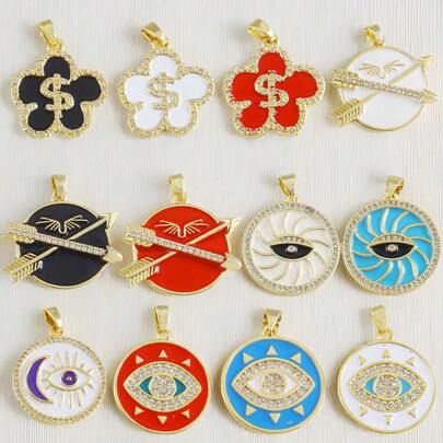 1个铜质花朵吊坠,带有字母S、邪眼、月亮眼、双箭翼圆形吊坠,适合DIY手链、项链、脚链,是情人节、母亲节、日常佩戴、送给同事的理想礼物。 - 彩色 - 查看 14