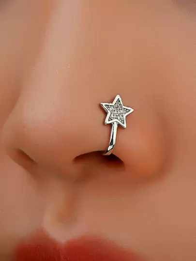 1個銅嵌入星形設計的假鼻環夾,適用於女性日常穿戴 - 銀色 - 查看 2