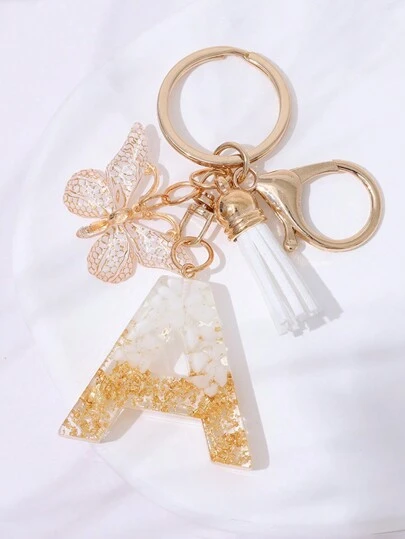 1 件创意 26 个字母蝴蝶钥匙扣吊坠,儿童背包和手提包配件 - 彩色 - 查看 26