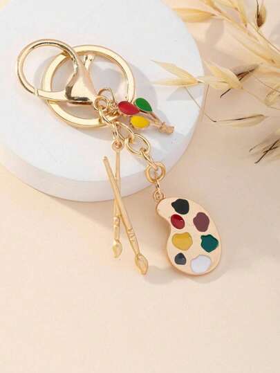 1個創意diy畫筆和畫板設計的汽車鑰匙扣,新穎的藝術禮物,適合學生/學童/藝術生活愛好者 - 金色 - 查看 1