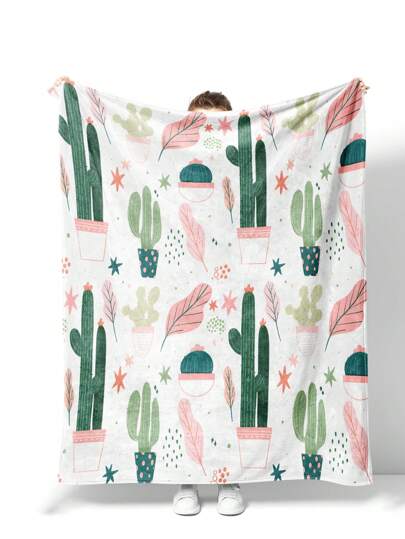 1入組-可愛仙人掌印花新禮品毯,休閒風格,法蘭絨,長方形,柔軟舒適的午休毯,適合寵物,適合旅行和旅遊,適合客廳沙發,適合所有季節 - 彩色 - 查看 1