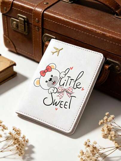 1个可爱卡通熊护照套,旅行钱包卡包票夹,必备旅行配件护照夹,男女通用,简约时尚可折叠护照袋,有白色、黄色、蓝色、粉色、红色可选