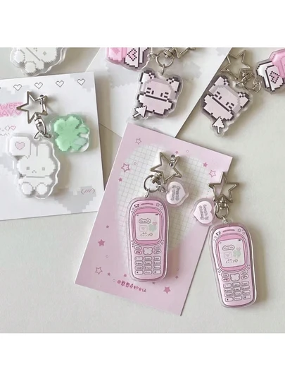 1个可爱卡通像素艺术钥匙扣 - 复古8位像素风格,饰有爱心和三叶草,浅粉色和白色,萌萌的兔子造型,非常适合挂在包包或钥匙上,是绝佳的新年礼物 - 彩色 - 查看 12