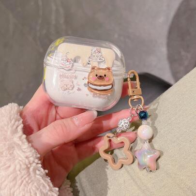 1个可爱卡通透明耳机保护套,带挂件,适用于三星Galaxy无线耳机保护套