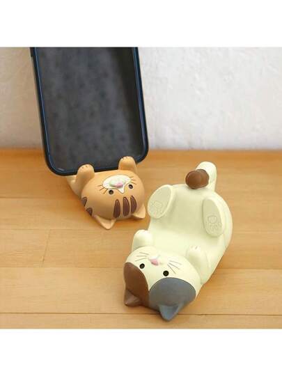 1 件可爱猫咪桌面手机支架,树脂工艺品躺猫智能手机支架,解放您的双手 - 彩色 - 查看 1