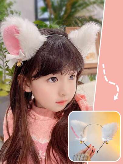 1入組可愛貓耳朵帶鈴鐺或狐狸耳朵風格兒童表演頭飾 - 白色 - 查看 1