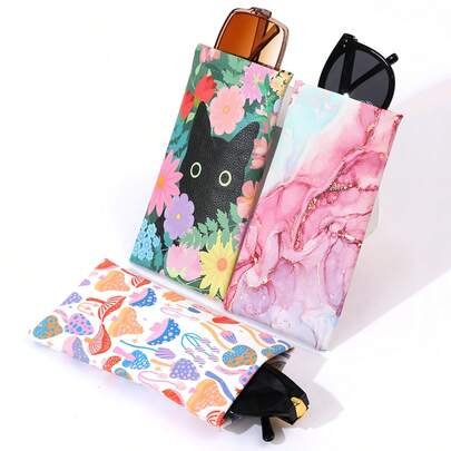 1个可爱猫咪PU(聚氨酯)眼镜盒,女士春夏眼镜袋,女士旅行必备眼镜包,时尚眼镜收纳袋