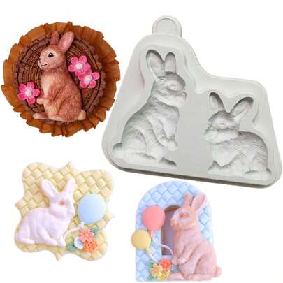 1个可爱兔子硅胶模具,翻糖蛋糕装饰工具,硅胶模具,糖果纸杯蛋糕模具,巧克力模具,厨房配件,烘焙工具,生日派对
