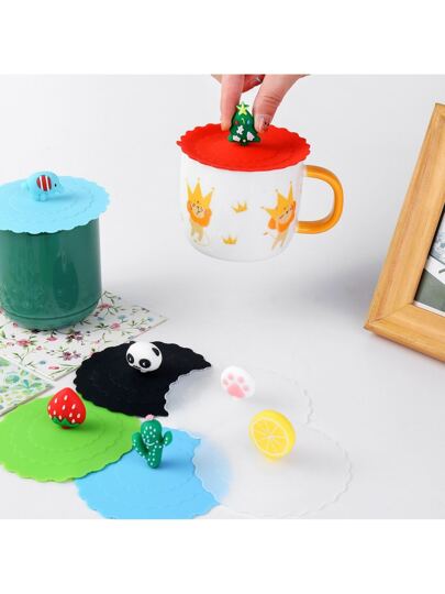 1入組可愛草莓裝飾杯蓋 - 綠色 - 查看 7