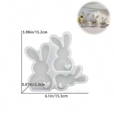 1个DIY环氧树脂模具,大/中/小号歪耳兔装饰,适用于DIY手工制作、节日装饰、日常装饰,可重复使用硅胶模具 - 白色 - 查看 3