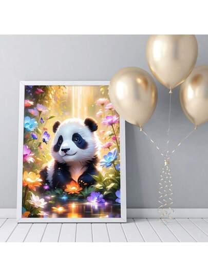 1入組熊貓動物油畫數字畫套件,DIY成人卡通著色畫,適用於客廳家居裝飾 - 紅木色 - 查看 1