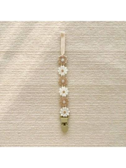 1入組菊花造型奶嘴咬咬頭安全防丟鏈,帶夾子的磨牙玩具繫繩 - 淺咖色 - 查看 1