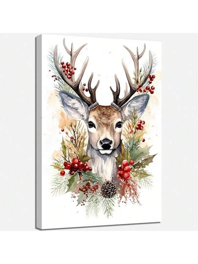 1pc Deer Canvas Prints Wall Art For Reindeer Pictures Funny Animal Paintings Winter Painting ,Canvas Print Painting Gift For Bedroom, Dining Room, Living Room, Office, Bathroom Kitchen, Home Decor, Framed, Ready To Hang - 彩色 - 查看 1