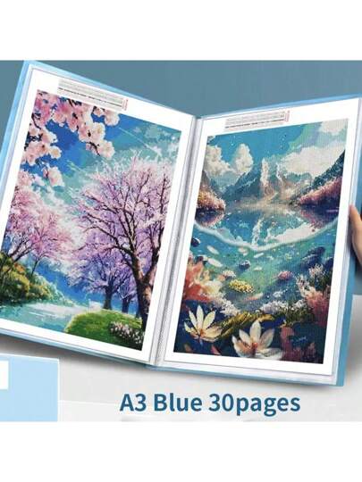 1 件钻石画收纳相册绘图收纳册,带耐用透明口袋和 30 页文件夹,适用于学生文具、证书和论文展示工具 - 彩色 - 查看 1