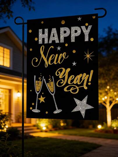 1面双面新年快乐美国花园旗,户外花园装饰,花园装饰横幅,户外装饰,花园饰品,节日装饰 - 多色 - 查看 6