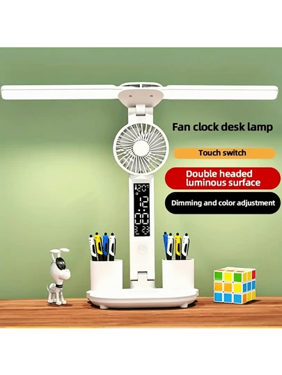 1 件双头照明 LED 风扇台灯,护眼书房宿舍插入式卧室智能床头灯 - 多色 - 查看 1