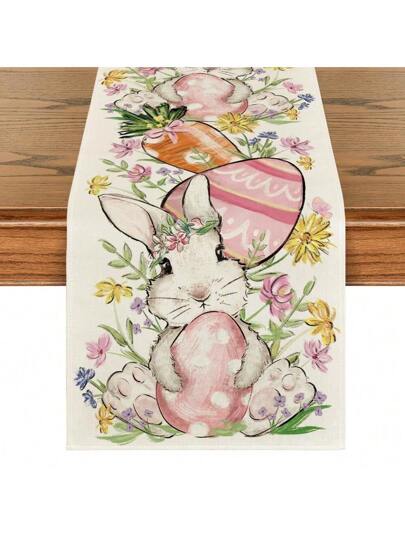 1 件复活节兔子和彩蛋桌旗,季节性春季厨房/餐桌装饰,家庭派对装饰,13x72 英寸 - 彩色 - 查看 1