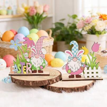 1个复活节兔子耳朵小矮人木制装饰品 - DIY复活节彩蛋花卉+复活节字母元素场景装饰道具,春季桌面氛围装饰,复活节主题可爱场景搭配单品 - 家居桌面/餐桌场景氛围装饰 - 彩色 - 查看 1