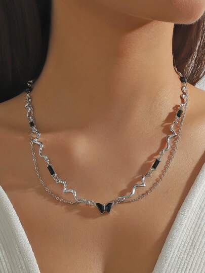 1件优雅别致的黑色蝴蝶创意百搭时尚项链,蝴蝶链项链,适合女性日常、派对、活动、约会等场合搭配首饰。 - 銀色 - 查看 1