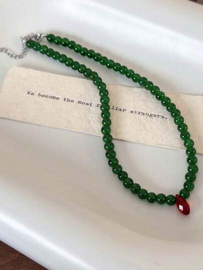 1件套优雅中国风复古绿色串珠项链和红色雨滴颈链,民族风修身锁骨链饰 - 串珠項鍊 - 查看 1