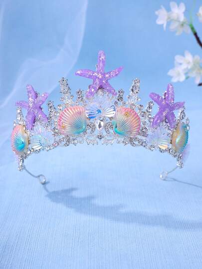 1 件优雅水晶公主皇冠、贝壳、星星装饰头饰、表演/生日礼物头饰 - 彩色 - 查看 1