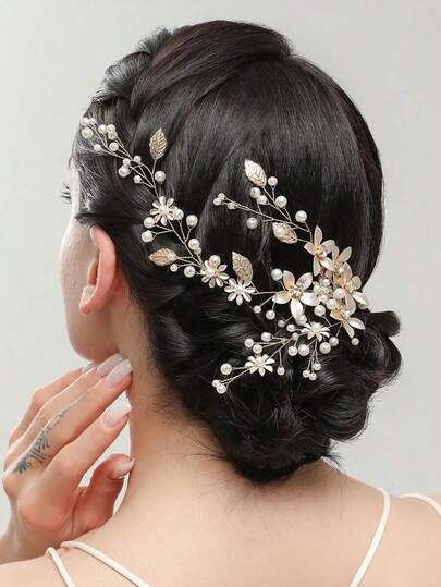 1件优雅花朵水晶手工发链配饰,适合婚礼、派对、聚会、情人节等场合。