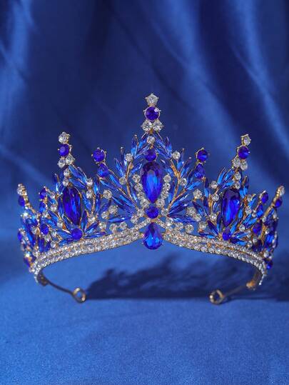 1件优雅奢华水钻巴洛克风格女士皇冠头饰,新娘婚礼发饰,浪漫公主舞会派对皇冠,情人节配饰 - 藍色 - 查看 1