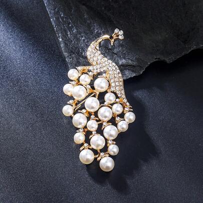 1枚优雅孔雀锌合金仿珍珠胸针,适合女性在婚礼、派对、正式场合、搭配外套、西装外套、母亲节、节日礼物等场合佩戴。