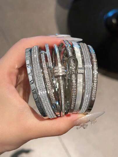 1 件优雅不锈钢银色时尚防水手链首饰女士 - 銀色 - 查看 26
