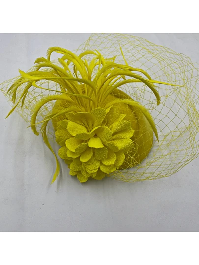 1頂優雅的復古法式貴婦羽毛帽,帶面紗和髮夾頭飾 - 黃色 - 查看 1