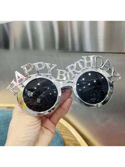 1个英文字母生日拍照道具塑料框眼镜装饰 - 銀色 - 查看 1