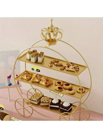 1件套欧式皇冠三层蛋糕架,带轮 - 铸铁材质,适用于婚礼和下午茶装饰,金色饰面,非食品接触展示架,适用于甜点、纸杯蛋糕、饼干(金色/白色/黑色)、糕点展示 | 优雅甜点架 | 坚固耐用 - 彩色 - 查看 1