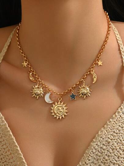 这款欧式中东时尚项链包含多种吊坠,包括星星、月亮、水钻、玫瑰、雏菊、镶钻恶魔眼、太阳、月亮、流苏等。这款多吊坠项链能够展现女性独特的风格和魅力,尤其适合派对、婚礼、节日和其他特殊场合。它也是一份绝佳的节日礼物。 - 彩色 - 查看 1