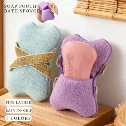 1个带皂袋的去角质沐浴海绵。意大利深层清洁海绵,配有皂袋和手带,男女通用 - 可在淋浴或泡澡时使用 - 2个双面沐浴泡沫袋,沐浴海绵皂袋,二合一去角质沐浴海绵套装,带手带的身体磨砂沐浴海绵,日常护肤程序