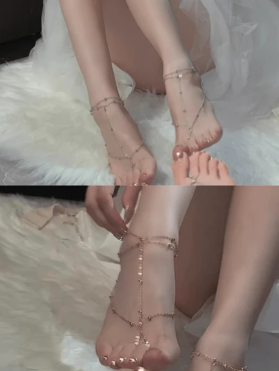 1入組異國風情復古性感多層流蘇女子腳鍊,帶腳趾戒的金屬鏈腳鍊 - 1件連指腳鍊 - 查看 1