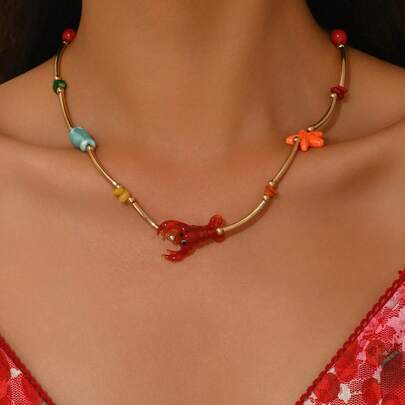 1件精美彩色多巴胺陶瓷海星、玻璃鱼、3D虾吊坠项链,适合海滩、派对、日常佩戴 - 彩色的 - 查看 3