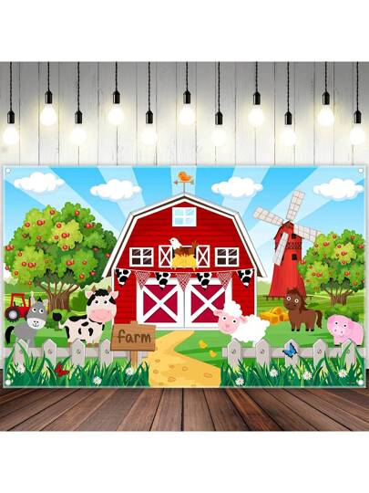 1 件农场涤纶摄影背景,卡通农场动物生日派对照片背景挂毯,农场动物横幅装饰,摄影棚工作室道具,生日蛋糕桌用品,圣诞节 - 彩色 - 查看 3