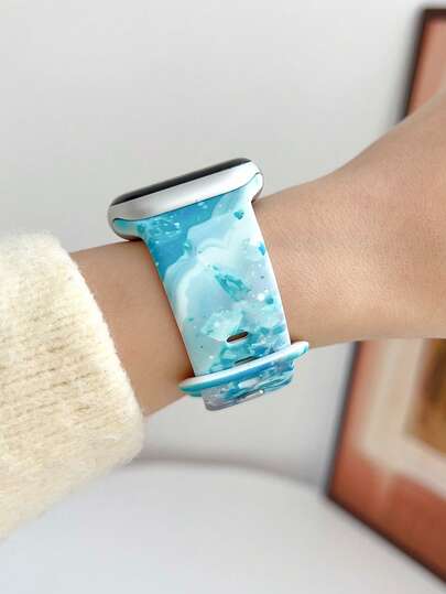 1条时尚彩色水晶矿物图案印花硅胶表带,兼容苹果手表表带,尺寸38mm、40mm、41mm、42mm、44mm、45mm、49mm(S10 42mm、S10 46mm),女士款;大理石纹柔软硅胶运动表带,兼容 Series Ultra 2、S10、SE 9、8、7、SE 6、5、4、3、2、1,适合搭配各种服饰,日常佩戴,也适合度假。
