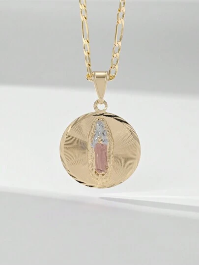 1 件时尚欧式 14K 镀金铜镶嵌锆石 3 色手绘圣母玛利亚吊坠项链,许愿最佳礼盒,适合母亲、情侣、最好的朋友、日常/节日穿着和祈祷 - 金黃色 - 查看 1