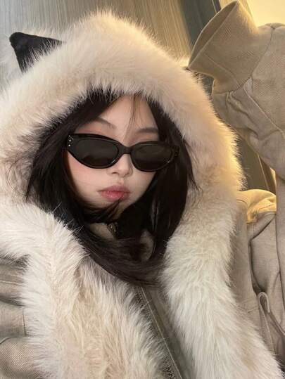 1件套时尚仿狐狸毛围巾帽子套装,女士冬季保暖防风飞行员帽,滑雪帽 - 米色圍巾一體 - 查看 1
