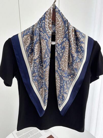 1件装时尚奢华仿丝绸印花浴袍披肩,女士沙滩防晒缎面围巾女士头巾夏季服装沙滩发带