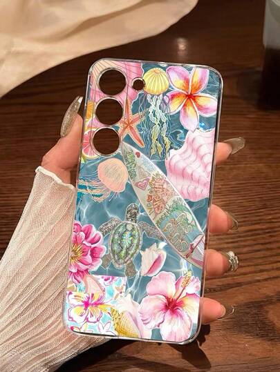 1个时尚海洋元素与花卉图案软手机壳,兼容、荣耀、红米、三星Galaxy A04e/12/A13/A14/A34/A50/A52/A53/A54/S21/S22/S23/S24/S25/S25 Ultra、6A/7A/8A、12T/13T,国际版,非国内版