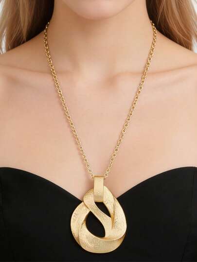 1件装时尚银色/哑光金色大号波西米亚简约几何合金吊坠项链,女士款,链长24英寸+2英寸延长链