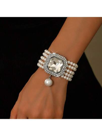 1件 时尚奢华多层仿珍珠几何图案女士水晶手链 - 彩色 - 查看 1